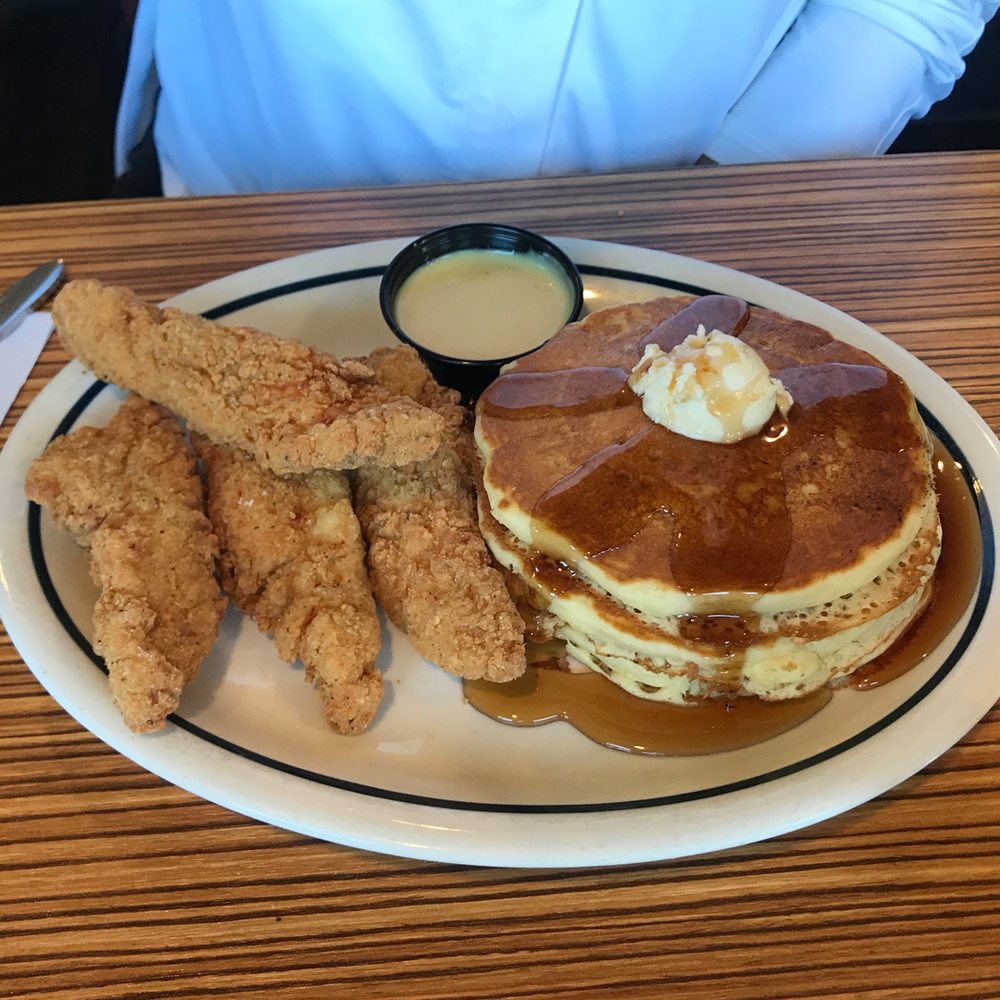 Four buttermilk crispy chicken breast strips made with all-natural chicken & our house-made Belgian waffle. Served with choice of buttermilk ranch, honey mustard or IHOP Sauce.